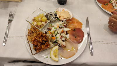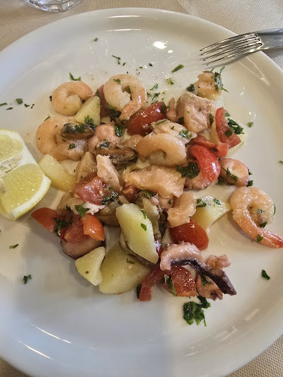 Non avrei mai pensato di mangiare un pesce così buono in collina! Abbiamo ordinato il fritto misto e un primo allo scoglio: tutto eccellente, fritto asciutto e pesce saporito. Si vede che c'è passione in cucina. Abbiamo concluso la serata al bar con un ottimo amaro. Bravi ragazzi, continuate così, il Dolce Simposio è una garanzia.